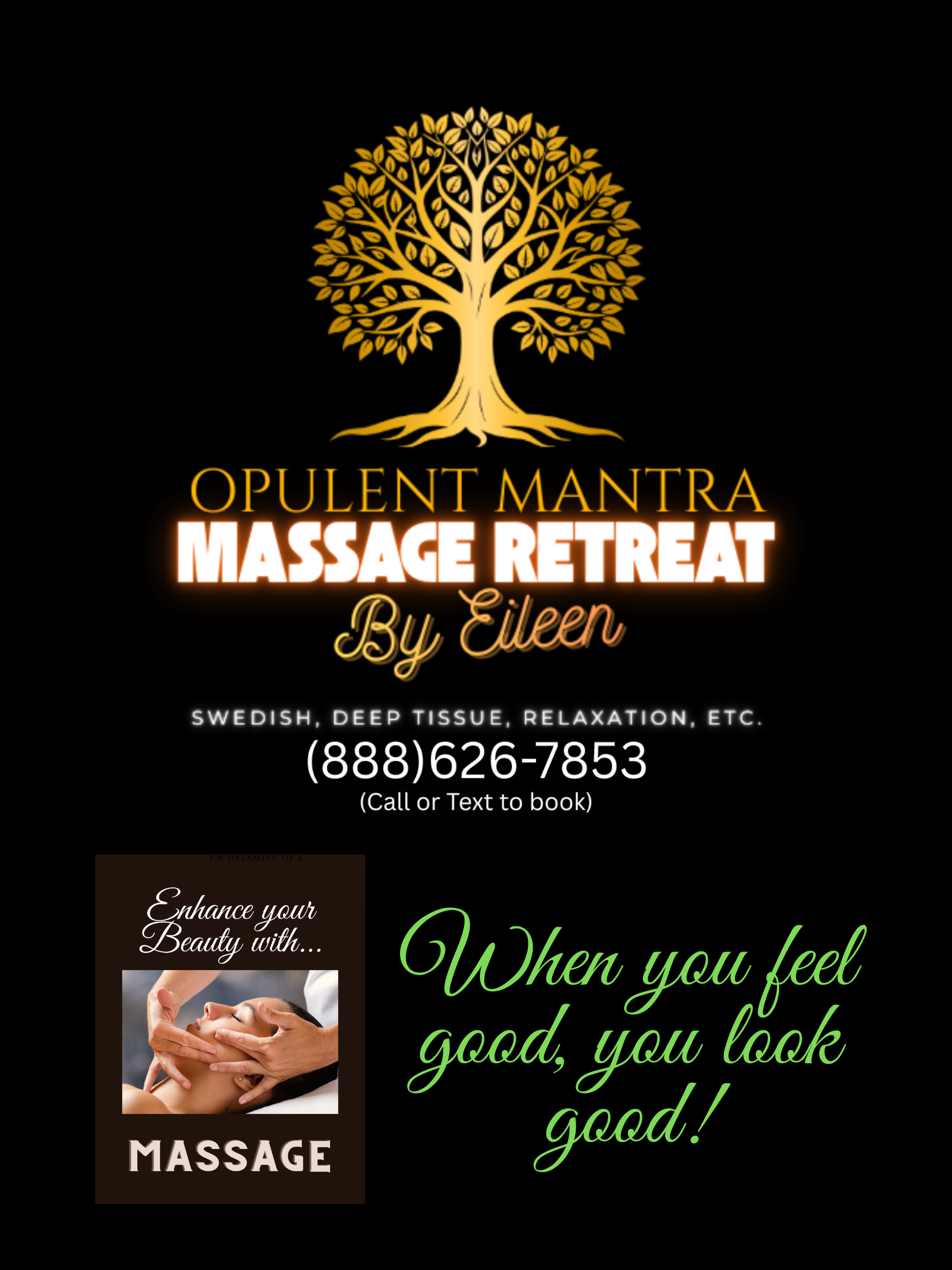 At Opulent Mantra -- Massage Retreat by Eileen, we offer a range of specialized massage services designed to meet your unique needs. Each session is tailored to promote healing, relaxation, and overall well-being.